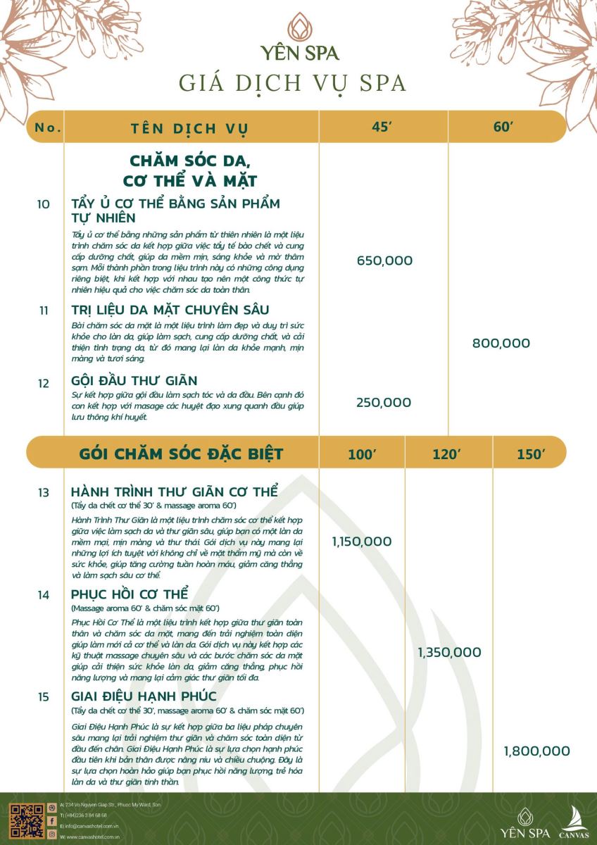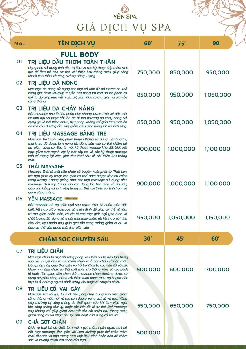 Tại Yen Spa, chúng tôi luôn nỗ lực để mang đến cho quý khách một phong cách sống khoẻ mạnh, không gian trải nghiệm thư giãn hoàn toàn mới mẻ và thư thái. Yen Spa bao gồm các phòng spa cao cấp, khu foot massage, bồn tắm jacuzzi, sauna, … Với những liệu trình đặc biệt cùng tiện nghi hiện đại nhất, chúng tôi sẽ làm diụ tâm hồn bạn trong môi trường trong lành và thuần khiết